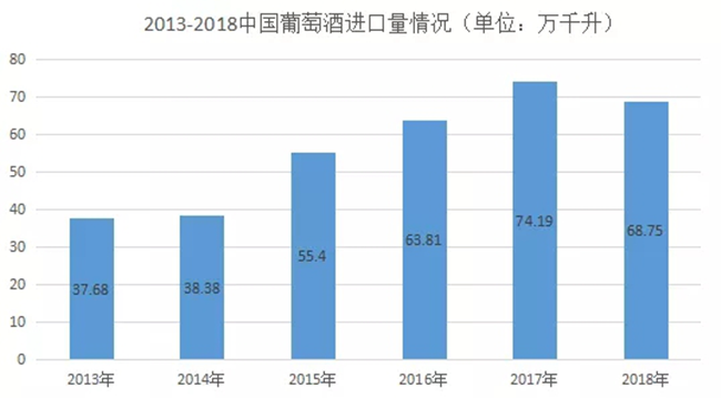 數(shù)據(jù)是反映市場(chǎng)的晴雨表。2013~2018年上半年我國(guó)葡萄酒的進(jìn)口量逐年遞增,2018年上半年,我國(guó)葡萄酒進(jìn)口量為38.54萬(wàn)千升,同比增長(zhǎng)25.8%。但從下半年開(kāi)始,局勢(shì)發(fā)生逆轉(zhuǎn),最終,2018年度葡萄酒以68.75億升的進(jìn)口量收尾,同比下降8.26%,從上面的數(shù)據(jù)分析可知,2019年一季度下滑態(tài)勢(shì)仍未扭轉(zhuǎn)。