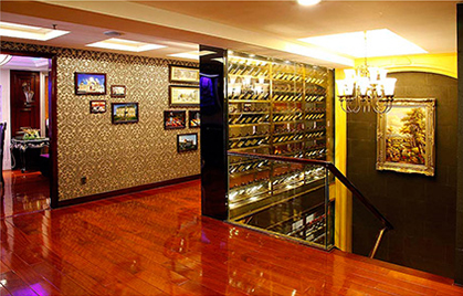 酒窖運用了"私人藝術酒窖式"理念,面積共300多平米,分上下二層,根據不同的功能,共設立品酒區、葡萄酒展區、VIP貴賓區、品茶區、KTV休閑區等多個功能區。裝修風格統一設計成歐洲簡奢主義風格,是東方浪漫情懷與西方簡約雍容的巧妙結合,明亮通透、淡雅卻不失精致。酒窖里伴著優美的法蘭西旋律,讓你感受到法國的浪漫與風情,令你身臨其境,流連忘返。